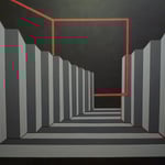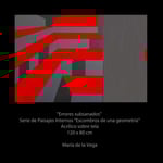 Esta nueva serie de Paisajes Internos: “Escombros de una geometría” nos lleva a percibir algo más que escombros; rozando una realidad otra en sus perspectivas imposibles y estructuras diagonales, conduciéndonos a través de líneas y colores hacia profundidades que ahogan y alienan.
